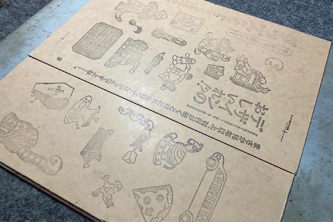 やる気満々の社長とノリノリな資材メーカーをよそに、現場にはとんでもない緊張感が漂っていたのだが、とりあえず箔版と刃型のセットが完了。漠然とのしかかってくる不安も少しだけ解消し現場にも追い風が吹き出した。いよいよ加工にとりかかる。