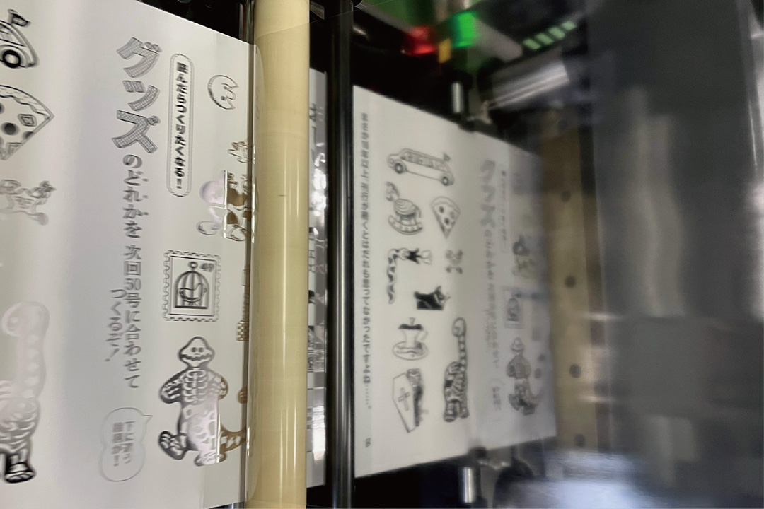 「グッズ」の文字の網掛けなどの箔の抜け感やベタのちょっとしたピンホールなど、見なければならない範囲が広くてエラーの発見が難しそう・・・