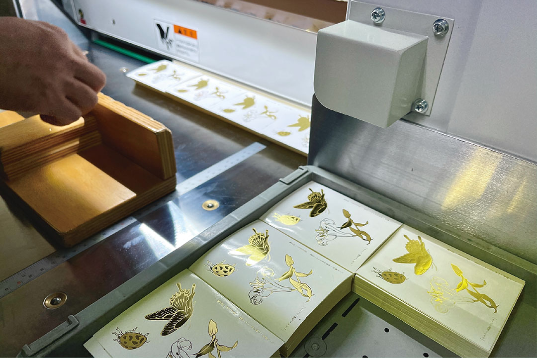 印刷を加えることも可能で箔押しは何色でも可能だが、製品の雰囲気もあるため、今回は2色箔押しが採用された。