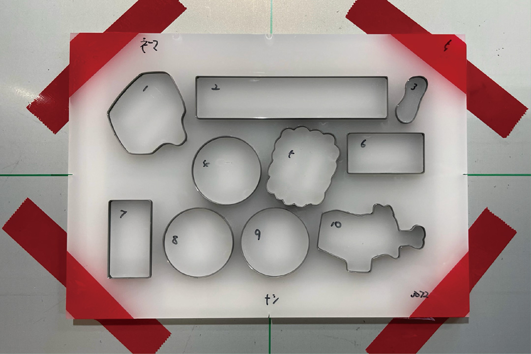 これにて印刷完了!次はシールを刃型で抜いていく。コチラも毎度お馴染み日伸製作所さんの刃型。今回もキッチリ曲げてくれちゃってます!本当にキレイ。