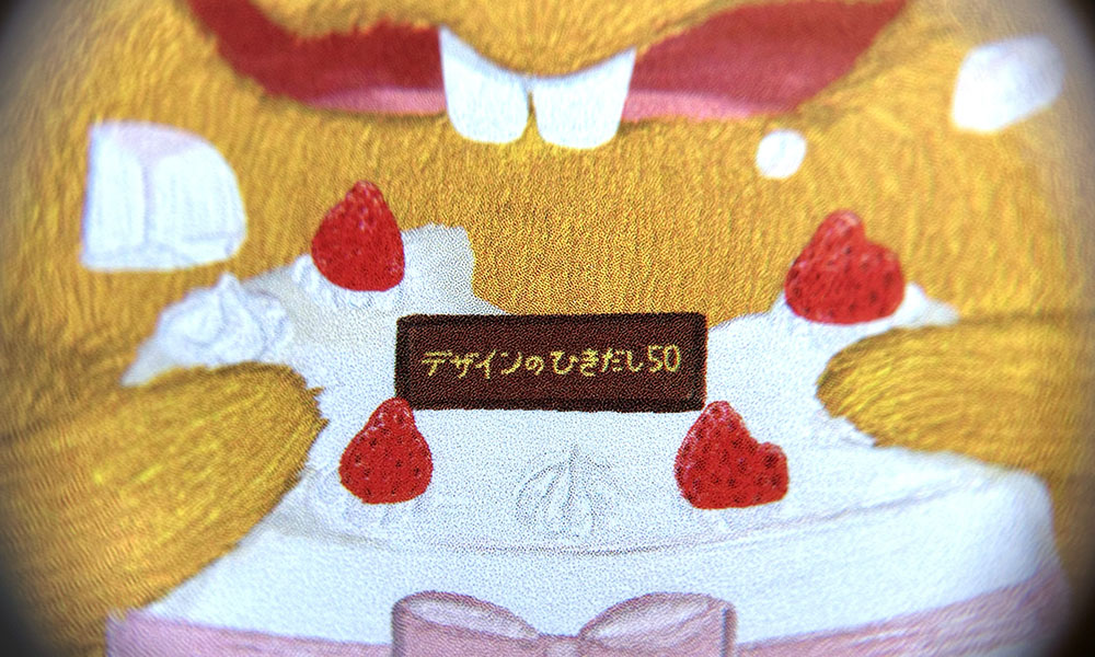 お祝いケーキのプレート名に「デザインのひきだし50」