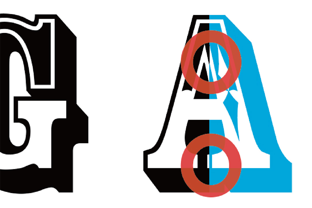 始点と終点を重複させなければならず、このようなカタチになってしまいます。※黒は1回目の印刷、青が2回目の印刷イメージです。