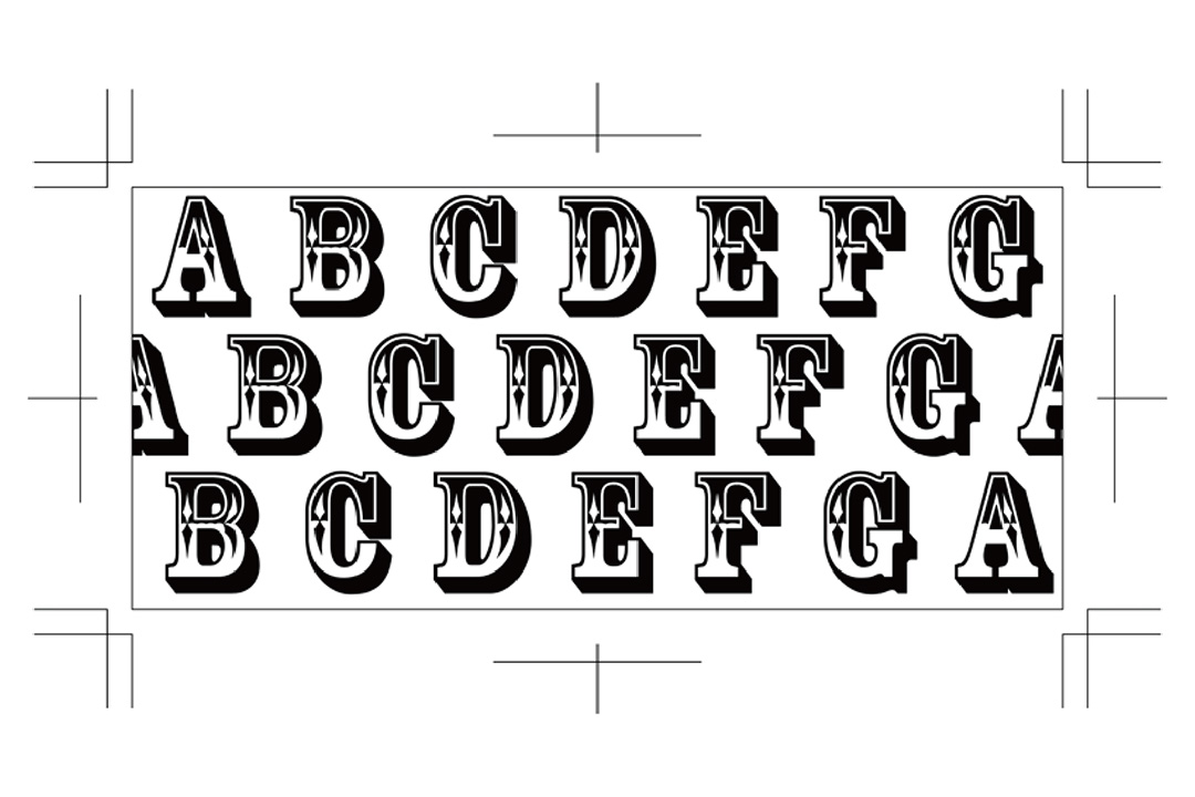 というのも、シール印刷機は上記の様に四角の情報を繰り返していく印刷特性があるため、リピート柄を印刷しようとすると・・・