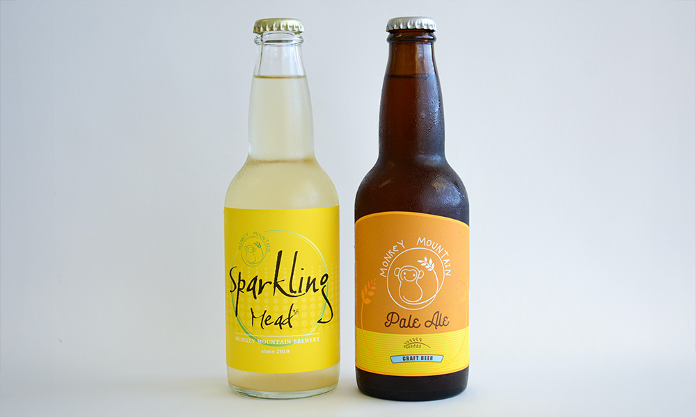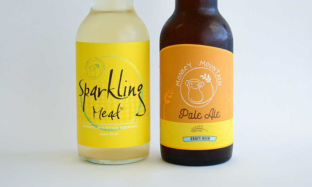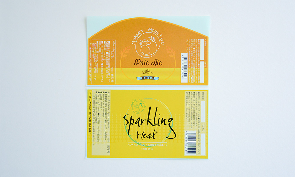 大分県大分市府内町に醸造所を構える株式会社Monkey Mountain様のクラフトビールラベルを製作しました。今回製作したのは、既存商品の①「Pale Ale(ペール エール)」と新商品②「Sparkling Mead(スパークリング ミード)」の2種類です。