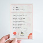 「まずは、自分が幸せになる」をテーマに、心身の健康を考える旭陽電気様の「WELL LABO」事業。その一環として、日常に取り入れやすいストレッチを提案した卓上カレンダーの付録シールです。