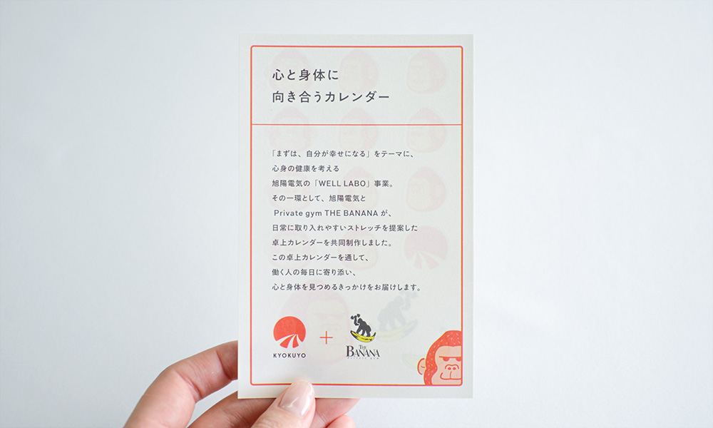 旭陽電気株式会社様とPrivate gym THE BANANA(運営:株式会社ココルフ様)が共同制作された、卓上カレンダー用付録シールを製作しました。