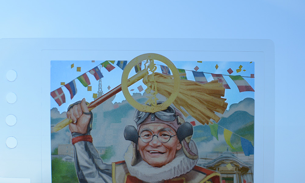 偉大な先人の足跡をしのび、ナカニシさんと共に熊八をイラストのモチーフとして選定。彼のハツラツとしたキャラクターを、重厚な写実表現で描き出していただきました。