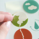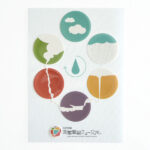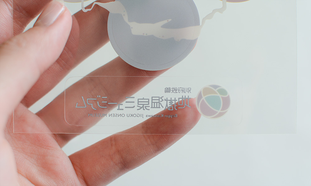静電気でブロッキングしにくいよう剥離紙に帯電防止処理が施された透明素材を採用。配布時の取り回しに配慮しました。また、印刷色を鮮やかに表現するため、背面に白を2回印刷しています。
